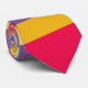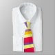 Un design rayé et coloré en rouge, orange, violet et jaune citron.