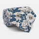 Cravate Roses blanches avec feuilles bleus sur blanc