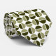 A tie with an attractive geometric design made up of divided circles with two toned halves each motif is rotated 90 degrees to the previous one creating an interesting and dynamic modern pattern.