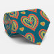 Cravate Rouge, Coeurs verts sur Turquoise foncé