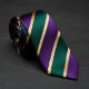 Cette cravate accrocheuse présente des rayures diagonales nettes dans des tons de violet vibrant, de vert émeraude profond et de fines lignes dorées scintillantes. La combinaison de couleurs audacieuse crée un look confiant, luxueux et moderne qui se démarque de la meilleure façon. Parfait pour les mariages, les événements formels, les couleurs de fraternité ou d'école, ou pour ajouter une touche de personnalité à votre tenue de travail. Le violet et le vert riches avec des accents dorés s'associent magnifiquement avec des chemises et des costumes blancs, noirs, bleus marine ou gris. Que vous soyez le marié, un garçon d'honneur, ou simplement un homme qui aime les cravates rayées classiques avec une touche fraîche et énergique, cette cravate rayée violet vert or apporte style, énergie et une touche de sophistication.