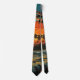 Ce cravate de vacances dispose d'un beau coucher de soleil sur l'île avec des palmiers sur l'eau.