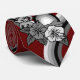Bourgogne et gris. Cette cravate est inspirée des shorts de surf et des chemises aloha des années soixante, ce motif audacieux combine des bandes de compétition, des fleurs d'hibiscus et un palmier. Ces dessins existent en plusieurs coloris.