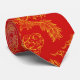 Une cravate rouge et or présentant un motif de dragon unique sur l'avant et l'arrière de la cravate.