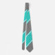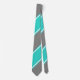 Une cravate rayée turquoise et argentée, un peu plus design.
