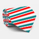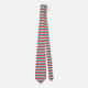 On se distingue dans cette cravate à rayures horizontales turquoises, rouges et blanches alternant.