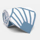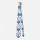 Cette cravate a un design art déco de diamants bleus poussiéreux avec des lignes diagonales et des diamants bleus foncés sur un champ de blanc.