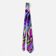 Voici une cravate de design abstrait vive et colorée qui sera certainement remarqué! Les couleurs comprennent le violet, le vert citron, le bleu, le violet, le rose et le noir, le tout descendant dans un motif unique sur la longueur de la cravate. Lumineux !