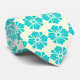 Cravate Wallstreet Hibiscus Foulard Ecru & Turq Deux faces