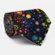 A Vibrant colorful whimsical tree pattern tie. Design features a pattern of magical trees with jeweled flowers and leaves all on a black background. A fun bright design for all.