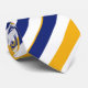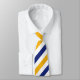 Cette cravate blanche, dorée et bleue à rayures diagonales possède à la fois une atmosphère ancienne et moderne.