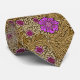 Cravate dans un vintage William Morris, Art Nouveau, imprimé marigold damassé de feuilles et de fleurs, numériquement rehaussé et coloré, dans les tons marron clair et beige, accentué de violet violet et rose, sur un arrière - plan chocolat foncé