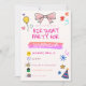 This crayon-style birthday invitation is designed to look like a kid colored it themselves. Hand-colored, playful, fun textures, bright colors, and a sweet hand-drawn bow on top. Crayon-colored sun, house, present and balloons make it a fun, cheerful, bright and great invite for kids’ birthdays. Leave the pink color as is and it's perfect for a girl, or change the bow, name and paint stroke to any color you'd like!