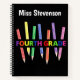 Commencez la nouvelle année scolaire avec ce cahier de quatrième année qui peut être utilisé par les enseignants et les élèves. Le design se compose de 7 crayons de couleur différents à des angles différents les uns à côté des autres avec le mot "Quatrième année" au-dessus. Ce cahier peut être personnalisé en changeant le nom dessus, et ferait un excellent cadeau de rentrée.