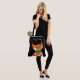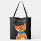 Mignonne partout imprimer sac fourre-tout croisé corps fait en noir, avec un comique chat de dessin animé orange et blanc. Texte personnalisé, en haut du sac dit, Crazy Cat Lady. Le plaisir porte tout pour n'importe quel amoureux des chats.