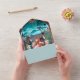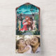 Une jolie main religieuse peinte en bleu de la crèche, rouge Marie & Joseph et bébé Jésus. OEuvre originale de Caroline Bonne Müller