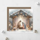 Cette scène sereine de la Nativité capture la beauté paisible de la Sainte Famille sous une étable en bois rustique, doucement éclairée par des lanternes et entourée d'une douce chute de neige. Le design présente Marie, Joseph et le bébé Jésus dans un moment chaud et révérencieux, accentué par de délicates fleurs hivernales, des branches de pin enneigées et des guirlandes lumineuses. Des colombes et des paniers tressés ajoutent un charme pastoral, tandis que le style aquarelle doux évoque une atmosphère calme et sacrée. Idéal pour ceux qui cherchent des décorations de Noël spirituelles ou religieuses, cette œuvre d'art combine un symbolisme intemporel avec des touches saisonnières élégantes, créant une image de vacances touchante et réfléchie. Artwork généré par l'IA.
