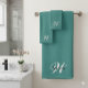 Un ensemble de linge de toilette et serviettes minimes avec le nom personnalisé et le monogramme de votre destinataire ou du vôtre dans un cadre couleur Turquoise. Si votre modèle de salle de bain est une couleur séparée, n'hésitez pas à utiliser la fonction de personnalisation pour changer chaque linge de toilette et serviette à votre choix de couleur personnelle.