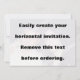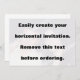 Créez facilement votre propre invitation horizontale. Changez d'image avec votre propre photo. Customisez-le si vous voulez modifier le texte, la taille de police et la couleur et faites votre propre invitation. Orientation horizontale mais vous pouvez facilement la faire verticale. N'oubliez pas de supprimer le gros texte avant de commander.