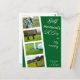 Capturez et partagez vos moments de golf préférés ou vos souvenirs de vacances de golf avec cette carte postale de vacances personnalisable ! Avec une mise en page élégante de bande de photos blanches sur fond vert foncé, ce modèle de carte postale vous permet d'ajouter quatre photos personnelles de vacances. Personnalisez-la davantage avec du texte personnalisé pour votre destination de vacances, la date ou un message attentionné. Parfait pour envoyer des salutations de vos voyages ou pour garder en souvenir !