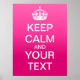 Créez votre propre affiche personnelle "Keep Calm and Carry On" avec un arrière - plan à dégradé rose chaud ! Allez-y et remplissez votre propre texte dans les cases fournies, et n'hésitez pas à customiser comme vous le souhaitez (couleur arrière - plan, ajouter des images, etc). Idéal pour les enseignants - faites une affiche personnalisée pour votre classe ! Ou créez votre propre slogan personnel pour le bureau ou juste votre bureau. Amusez-vous et amusez-vous !