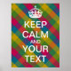 Créez votre propre affiche personnelle "Keep Calm and Carry On" ! C'est une version plaid colorée, avec de l'or, du bleu, du rose et du rouge. Allez-y et remplissez votre propre texte dans les cases fournies, et n'hésitez pas à customiser comme vous le souhaitez (couleur arrière - plan, ajouter des images, etc). Idéal pour les enseignants - faites une affiche personnalisée pour votre classe ! Ou créez votre propre slogan personnel pour le bureau ou juste votre bureau. Amusez-vous et amusez-vous !