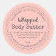 Étiquette de beurre corporel fouetté fait maison, organique, rustique et simple avec le texte "fait à la main par" et votre site web d'entreprise en typographie moderne noir délavé et calligraphie élégante sur fond rose pastel. Ajoutez simplement votre nom, site web d'entreprise, nom du produit, ingrédients et poids sur l'étiquette et vous êtes prêt à vendre vos produits de beauté bio faits main ! Conçu exclusivement pour votre petite entreprise par Happy Dolphin Studio. Si vous avez besoin d'aide ou de produits assortis, veuillez nous contacter à happydolphinstudio@outlook.com.