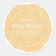 Étiquette de beurre corporel maison bio moderne, rustique et simple avec le texte "fabriqué à la main par" et votre site web d'entreprise en typographie moderne blanche sur un fond lavis aquarelle jaune doux. Ajoutez simplement votre nom, site web d'entreprise, nom du produit, ingrédients et poids à l'étiquette et vous êtes prêt à vendre vos produits de beauté bio faits main ! Conçu exclusivement pour votre petite entreprise par Happy Dolphin Studio. Si vous avez besoin d'aide ou de produits assortis, veuillez nous contacter à happydolphinstudio@outlook.com.