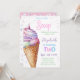 Joli et coloré deux scoops d'invitation de fête d'anniversaire amusant pour fille. C'est vibrant avec le violet et le rose avec le cône de crème glacée numéro 2 avec beaucoup d'arrosées.