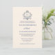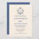 le design montre une faire-part de mariage écrite en calligraphie et typographie bleu-poussiéreux classique ainsi qu'une crête florale en haut. ce design est absolument unique, classique, élégant, moderne et sera parfait pour votre mariage.