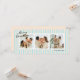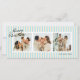 Petites rayures verticales crème et bleu ciel donnent à cette carte de vacances photo une ambiance moderne et chic avec des polices classiques et un long message customisé pour les amis et la famille.
