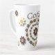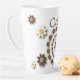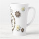 Cette tasse inhabituelle en latte présente mon design de cadres circulaires de fleurs couleur chocolat et crème. Idéal pour une pause café bien méritée, divertir les invités ou en cadeau.