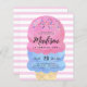 Cute Modern Blush Rose Light Blue Pastel Aquarelle Arc en ciel Saupoudrer Scoop Cone Crème de glace Enfants Anniversaire Invitation
