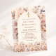 Une invitation moderne et élégante pour une première communion. Crème, arrière - plan couleur pêche, arche encadrée, décorée de fleurs crème. Personnalisez et ajoutez votre nom et les détails. 1 feuille = 1 invite imprimé bord à bord.