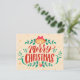 Accueillez votre famille et vos amis avec cette jolie carte. Le design présente des éléments décoratifs en forme de feuilles perses verts avec des cloches dorées sur arrière - plan couleur crème. Salutations "Joyeux Noël" avec de belles polices montrent la période joyeuse de l'année.