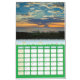 Un calendrier mural comportant des tirs des levers de soleil et des couchers du soleil.