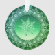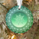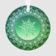 Un seul cristal de glace parfait, dans des teintes dégradées de vert, bleu et blanc; encadré par un design de flocon de neige lacé...donne presque un globe de neige comme effet. Le cristal de glace est en fait un modèle, vous permettant de remplacer par une photo de votre famille ou de votre scène d'hiver de votre choix, si vous préférez.