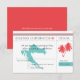 Carte de réponse RSVP pour mariage avec billet d'avion pour correspondre à l'invitation de mariage Billet d'Avion Croatie. Les couleurs sont Corail Foncé et Turquoise Clair. Carte de Croatie et deux palmiers sur le design. Si le schéma de couleurs n'est pas ce que vous vouliez, veuillez envoyer un courriel à paula@labellarue.com AVANT de passer commande pour qu'un nouveau design puisse être créé pour vous. Veuillez vous assurer de vérifier votre design avant de soumettre votre commande.