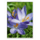 Design floral élégant. Fleurs de crocus violet fleurissant sur l'herbe verte arrière - plan, effet de peinture