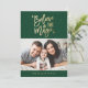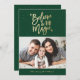 Partagez la magie de Noël en envoyant à vos proches un carte photo de vacances moderne. Cette carte de vacances élégante présente un texte en feuille d'or faux qui dit "Croyez en la magie", arrière - plan vert avec des points verts clairs, et espace réservé pour votre photo et texte personnalisé.
