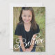 Un design moderne de belle typographie qui dit "Croyez - dans la magie de la saison" et dispose d'une photo grandeur nature de votre famille heureuse. Placez le dos pour ajouter votre message de vacances personnel ou plus de photos si vous le souhaitez. Un accueil magnifique et contemporain pour tous les salons de vacances.