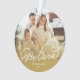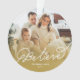 'Believe' Étoile Écrite Écran Blanc Script Avec Superposition Ombre Or, Ornement Photo De Noël. L'arrière comprend un message de vacances et un motif étoilé plein de sang. L'arrière - plan de base peut être changé en couleur de votre choix. La plupart du texte est modifiable. Illustration de fat*fa*tin. Facile à personnaliser avec votre propre message texte, nom, photo ou image. D'autres styles de police, filtres photo et fonctions d'édition sont disponibles sur la page "modifier la conception". ・ ・ ・ ・ ・ ・ ・ ・ ・ www.zazzle.com/fatfatin_blue_knot