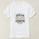 Ce design capte un message intemporel et inspirant avec une esthétique classique, rétro-vintage. Au coeur se trouve la puissante phrase "DREAM, CROYEVE, ACHIEVE", présentée dans une police texturée et audacieuse qui semble parfaitement usée et désespérée. Le graphique présente des éléments de support comme un coup de soleil et des ailes stylisées, tous encadrés dans une palette de couleurs cohésive et muette de bleu, d'orange doux et de crème. Il s'agit d'un design à la fois nostalgique et moderne, qui sert de rappel puissant et quotidien pour poursuivre vos objectifs et rester concentré sur votre cheminement vers le succès.