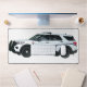 Un tapis de bureau avec la photo d'un véhicule de police de Ponca City.