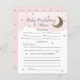 Cette mignonne carte de prédictions et de conseils pour bébé présente un arrière - plan blanc avec des étoiles de parties scintillant en faux or et la lune en croissant. L'envers présente des motifs vedettes parties scintillant en faux or sur un arrière - plan rose clair. Modifiez la couleur de l'arrière - plan et personnalisez-la en fonction de vos besoins. Vous pouvez trouver d'autres produits correspondants dans mon magasin.