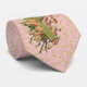 Croix avec Fleurs roses sur Cravate dorée Damas ro
