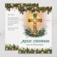 Envoyez des bénédictions et des voeux chaleureux de vacances avec cette belle carte de Noël chrétienne. Avec une croix de bois brillante enveloppée de lumières de Noël éclatantes, la carte est ornée d'une verdure festive, de pinecones et de glands, d'élégants ornements dorés et argentés apportant une touche de sophistication. Ci-dessus, une riche guirlande complète le design, capturant l'esprit de foi et la beauté de la saison des fêtes. Le message "Joyeux Noël" est affiché en police classique et festive, ce qui fait de cette carte une façon sincère de célébrer la saison. Parfait pour partager avec des êtres chers, des communautés religieuses ou toute personne qui chérit le vrai sens de Noël.