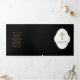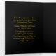 Faire-part de mort à l'air européen traditionnel, élégamment réalisé en noir avec des accents de ton or et dans un style tri-plié. Personnalisez avec la photo de votre être aimé et tout le texte qui correspond à vos besoins. Peut aussi servir de carte de deuil funéraire. Mappage des enveloppes noires disponibles.