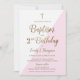 Croix d'or rose Baptême 2e Invitation anniversaire