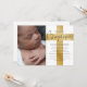 Invitez vos amis et votre famille au baptême de votre fils ou de votre fille avec ces invitations photo modernes. Les cartes présentent l'une de vos photos préférées, une croix dorée et un modèle d'invitation moderne facile à personnaliser. Les styles de police peuvent être modifiés en cliquant sur le lien de personnalisation supplémentaire après la personnalisation.